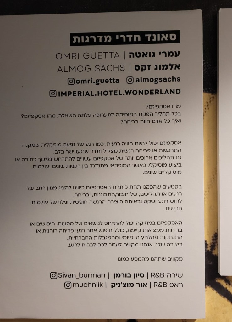 ביום הפעילות, אחרי הים, הלכנו לראות את תערוכת הפופ אפ החדשה במלון אימפריאל, אסקפיזם שמה, שאצרה יערה זקס.
