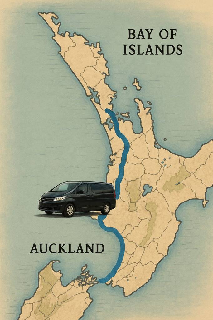 המסע שלנו, רוקם את העור שלו בצורת רכב שקוראים לו פה קמפר ואן, מדגם ניסן, שנת 2005. רכשנו אותו מאיש סתרים בשם ג'וני, שהפעיל אישה בשם מיה, ואני עד שלא היו לנו מפתחות ביד, לא הייתי בטוחה שאכן זאת עסקה אמיתית. האמת היא שבאוקלנד לא פגשנו ניו זילנדי אחד. כולם אסיאתיים. ולכן, מדברים באנגלית של סינים במקרה שלה, או הודית במקרים אחרים, או פקיסטנים, או טייאונים. ניו זילנדים לא פגשנו שם. ולא כל המילים ברורות. וגם ככה האנגלית שלי לא משהו, ורוב הזמן אני בחוויה של משהו ליד. מבינה את הקונטקסט הכללי לא את הדקויות.