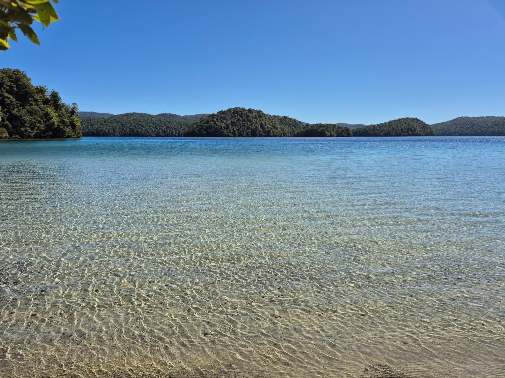 זה כבר היה סימן גלוי לכך שאנחנו צריכים לשוב על עקבותינו ושמנו לב לא רחוק משם, לכניסה אל חוף מגן עדן באגם עם מי קריסטל בראש הגבעה.
